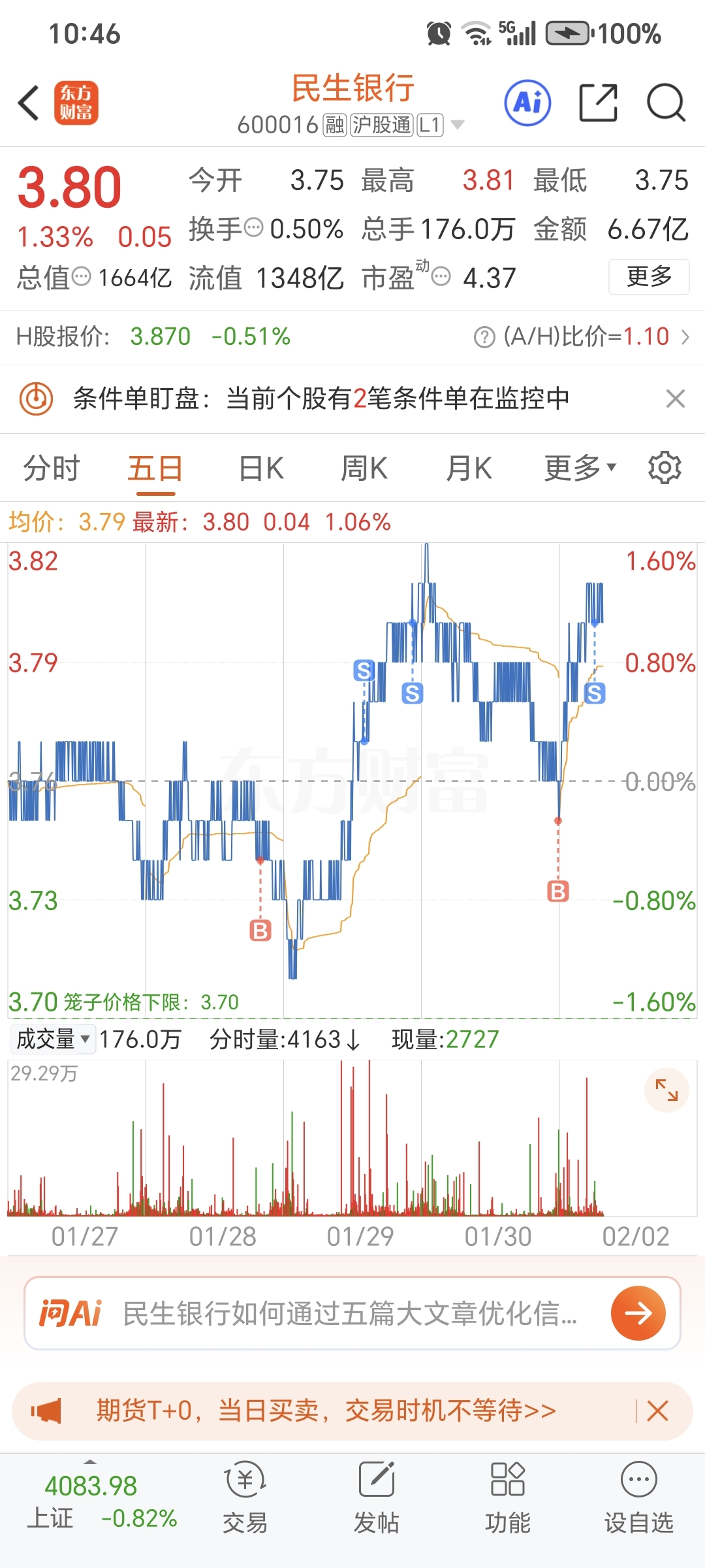 $民生银行(SH600016)$ 反复做T比较香的一批
