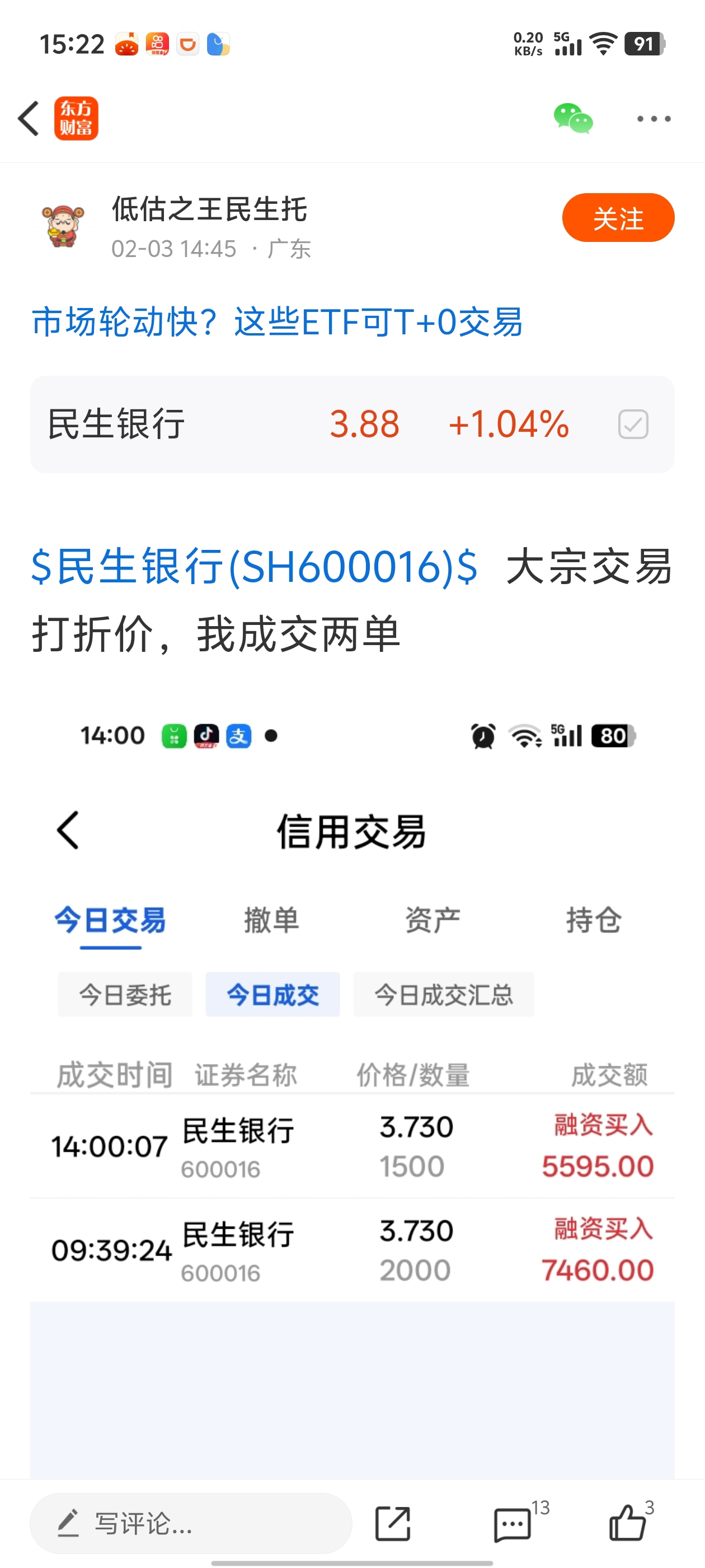 $民生银行(SH600016)$ 这个不在汪汪汪的叫,就涨了,害人精