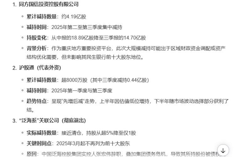 民生银行25年下跌,其中减持最多的三个机构