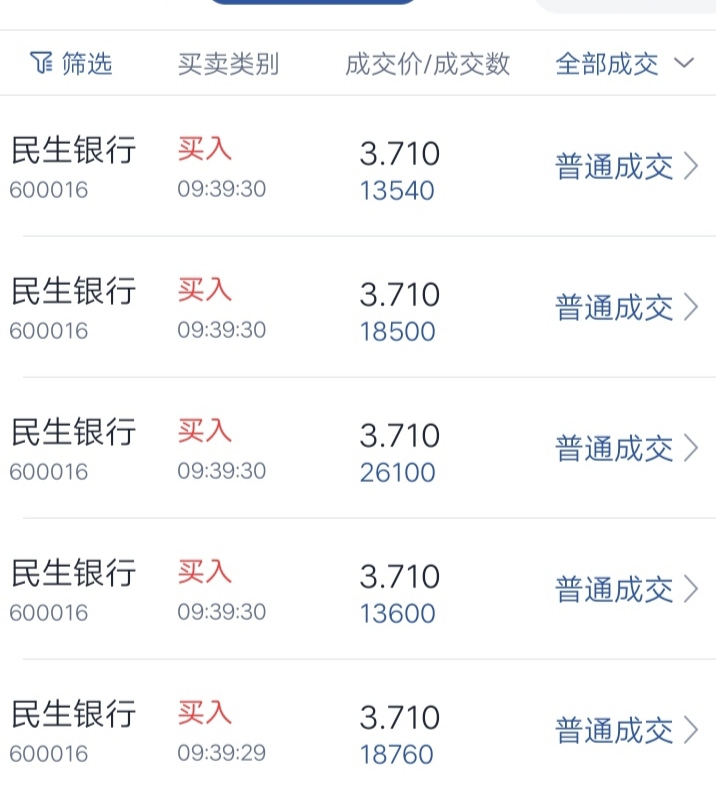 看来前几天3.71是抄到民生的老底了(最低3.70很难成交)。