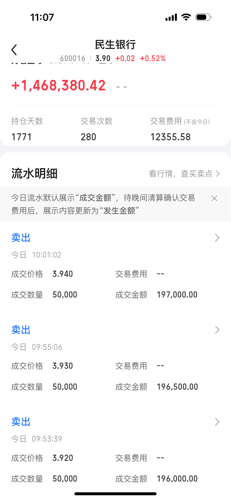 民生银行开始获利了结