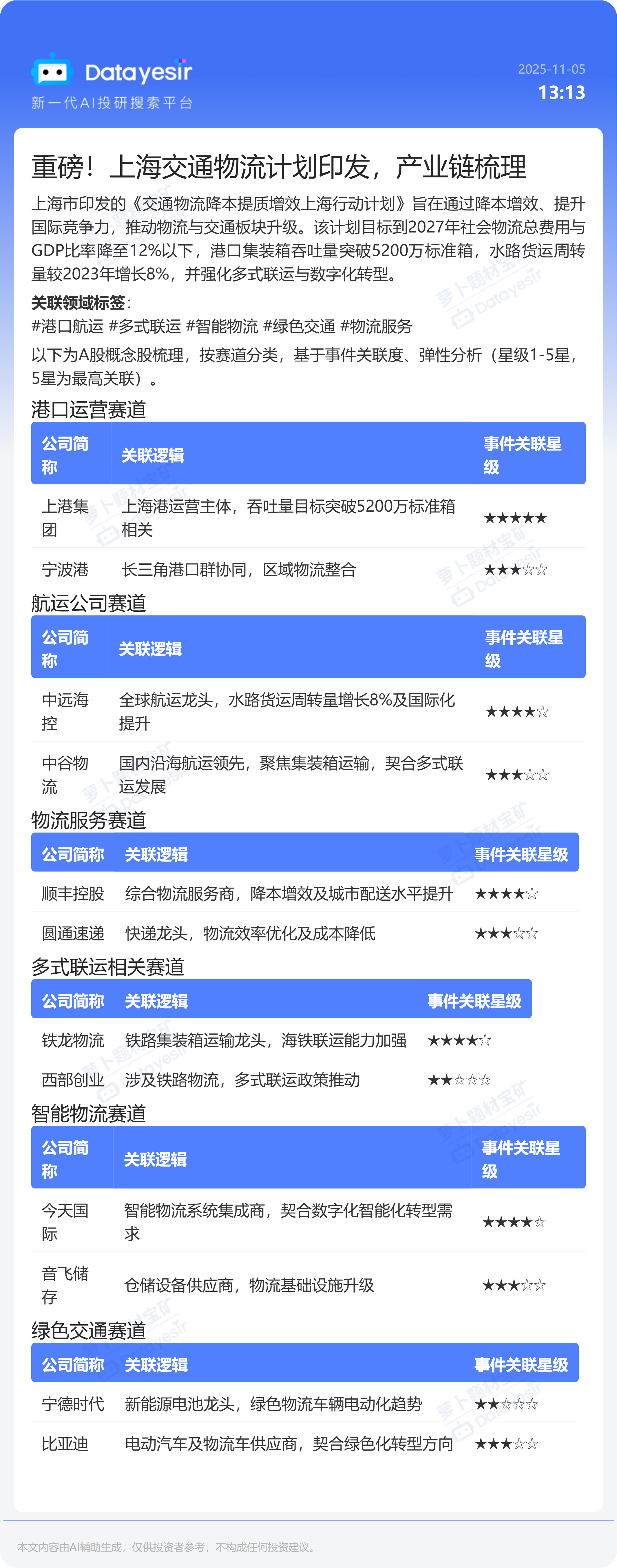 重磅!上海交通物流计划印发,产业链梳理