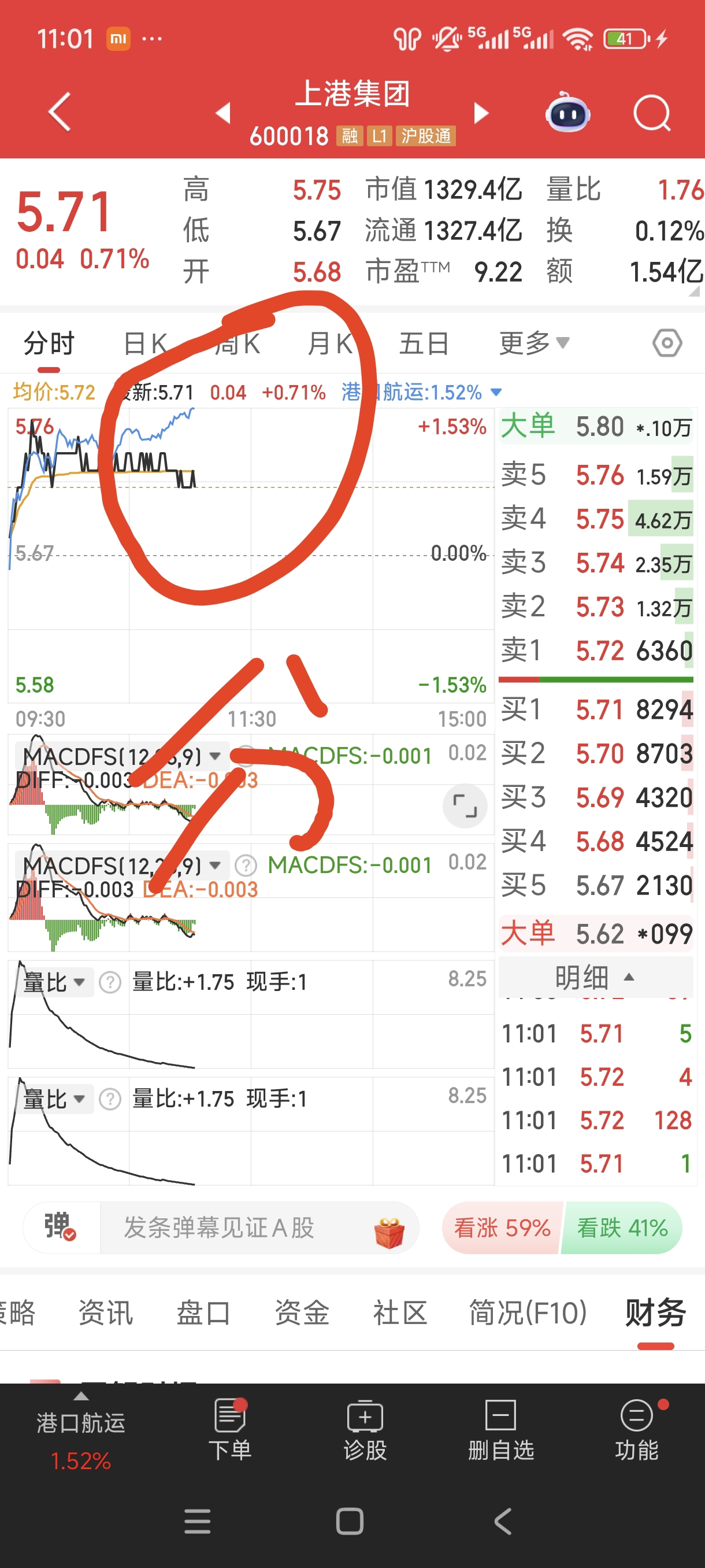 $上港集团(SH600018)$ 无力,又萎了,和盘口又分叉了。