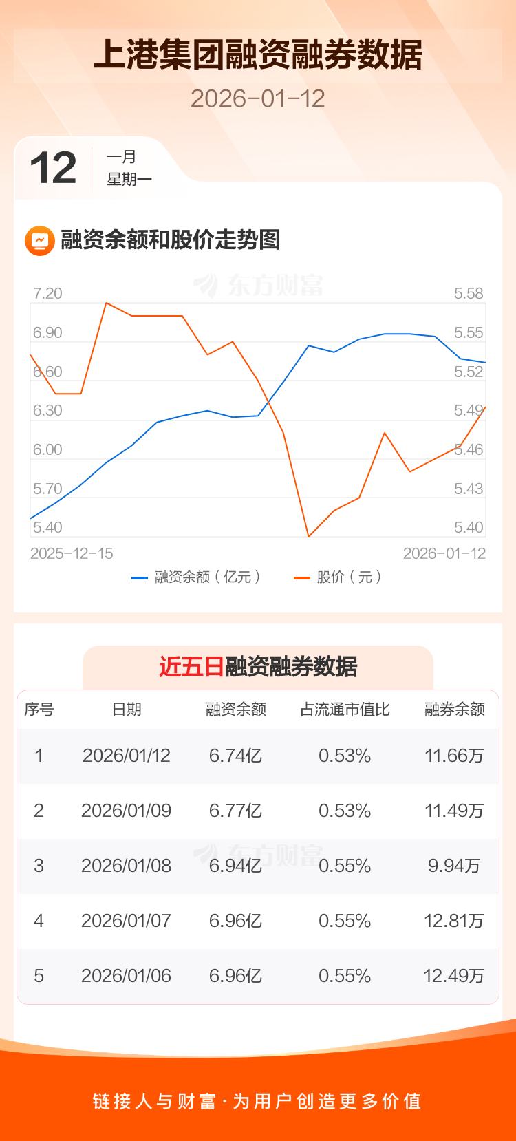 交易所最新数据显示,上港集团于2026年1月12日获融资买入1625.64万元,融资偿还1978.48万元,当日融资净偿还352.84万元。目前,该股融资余额6.74亿,占流通市值比例为0.53%。