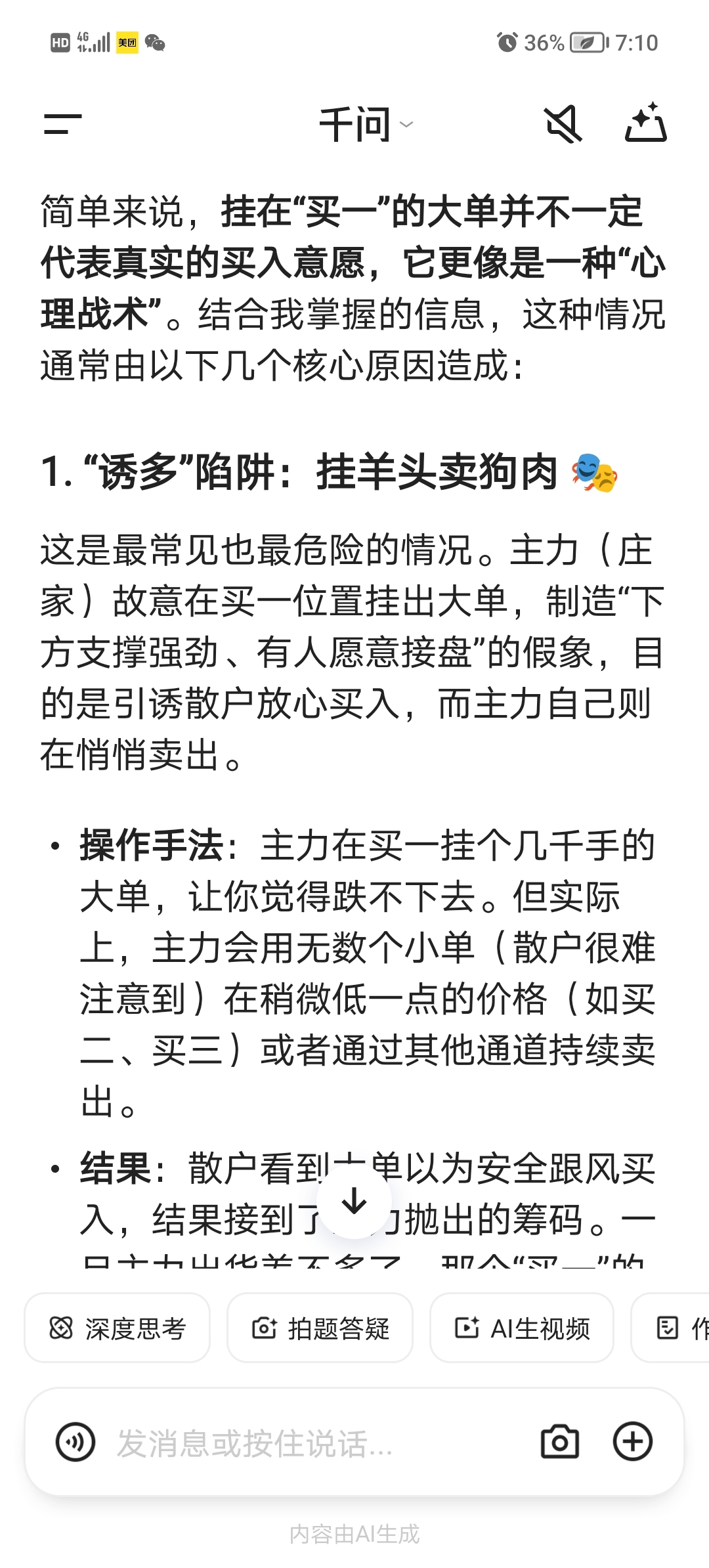 通义说了,这种盘面是危险的出货!幸好昨天撤退!