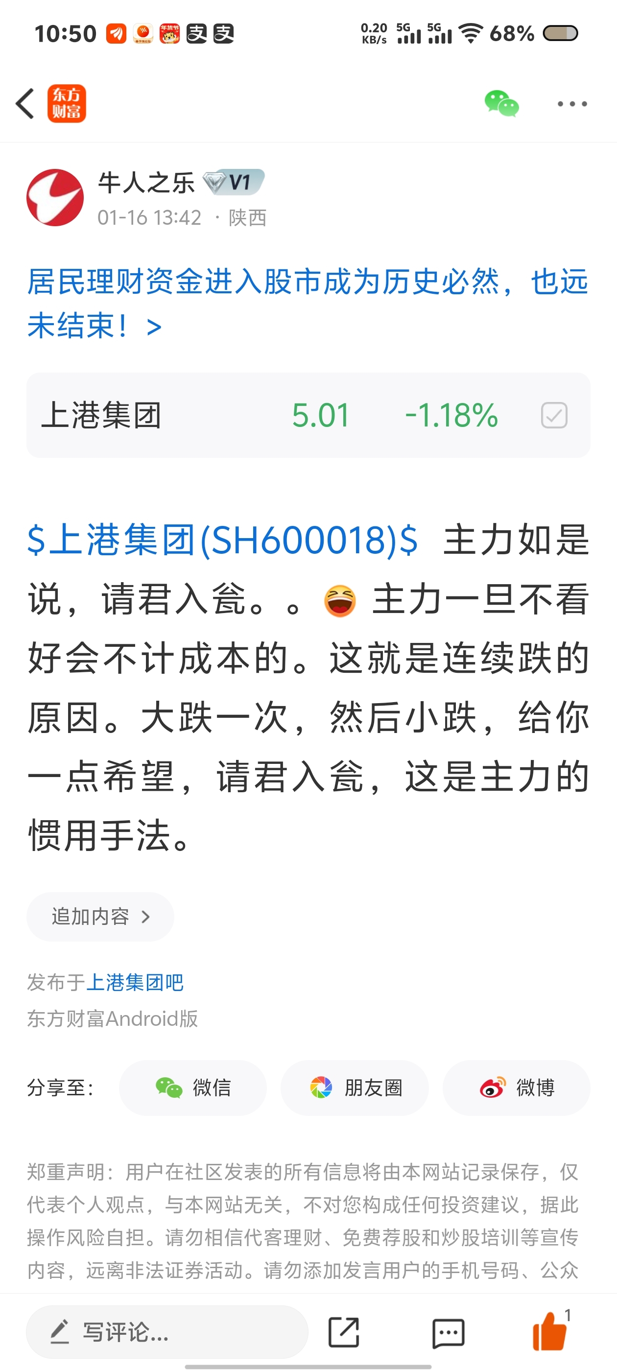 $上港集团(SH600018)$ 上次算了一次卦。再次算卦:下跌进入第二阶段。手法是:稳住打!稳住,就是把股价固定在某一相对位置,然后让散户以为跌无可跌了,疯狂涌入,然后他在相对位置容易出货。不信等着瞧吧。