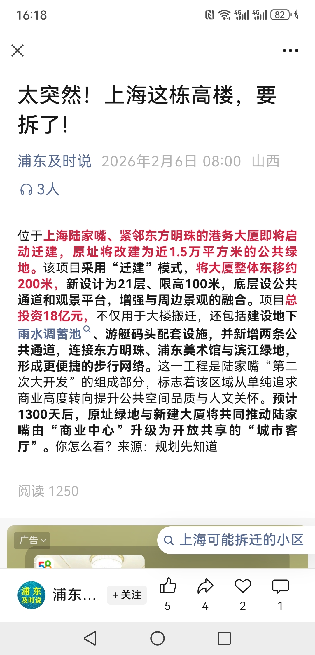图中带天线顶的那幢就是港务大厦,当年造的时候,根本没想到浦东陆家嘴会发展为今天这