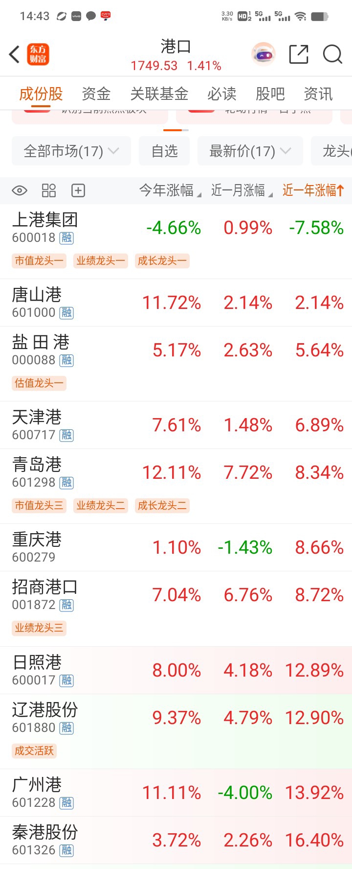 去年,今年股价涨幅都是排名港口板倒数第一