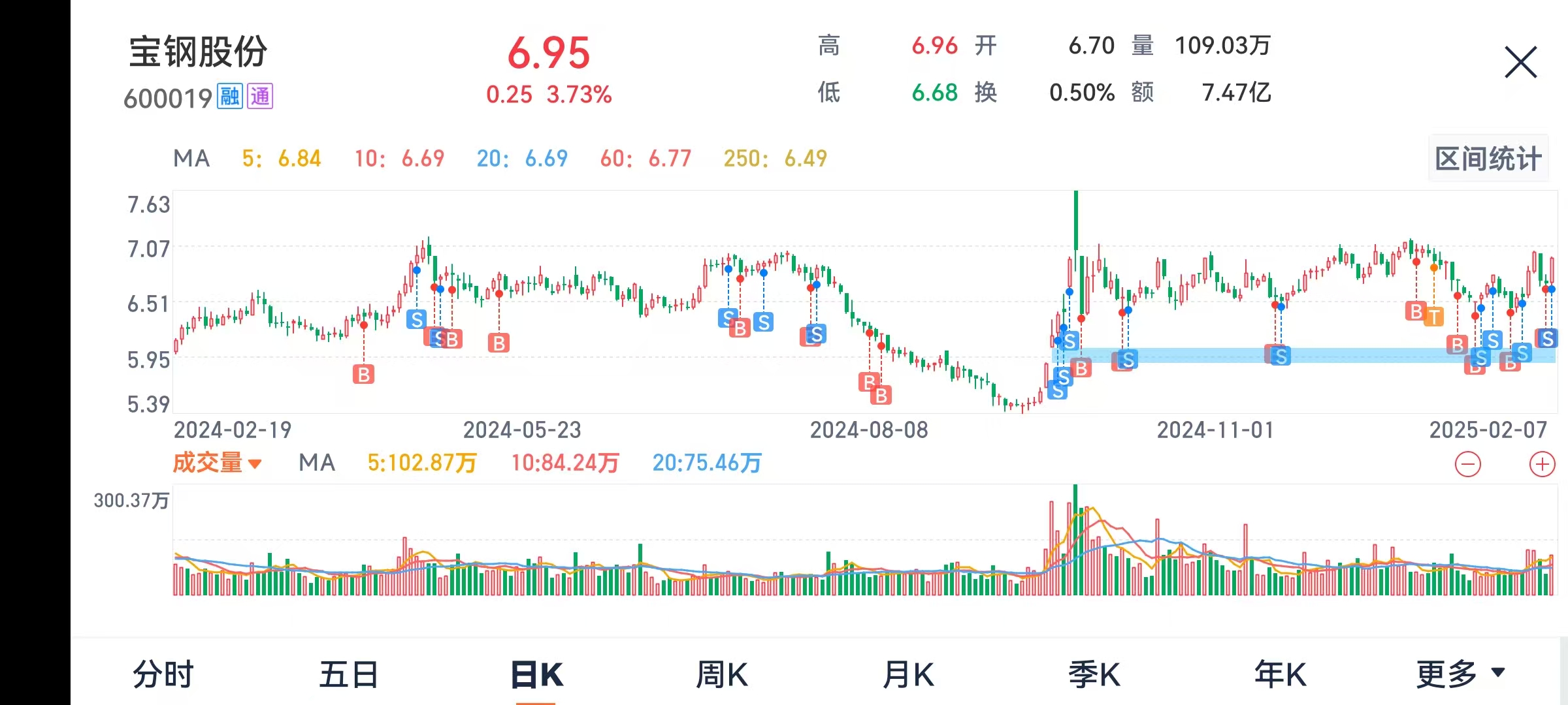 我一直说宝钢不会让你快速致富,但是只要你不割肉,它会对得起你的。买宝钢不要乱割肉,不要乱操作。