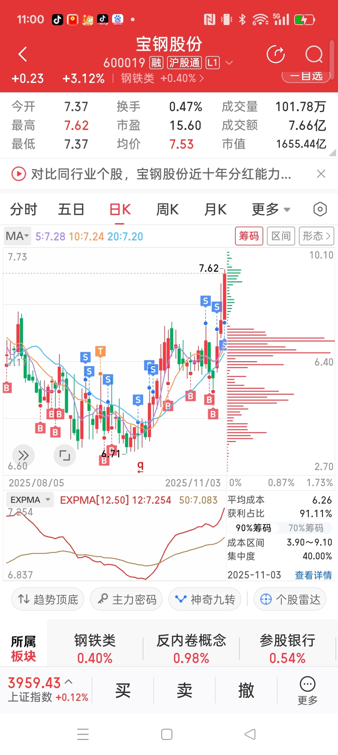 $宝钢股份(SH600019)$ 真的拿不住了能不亏就行了