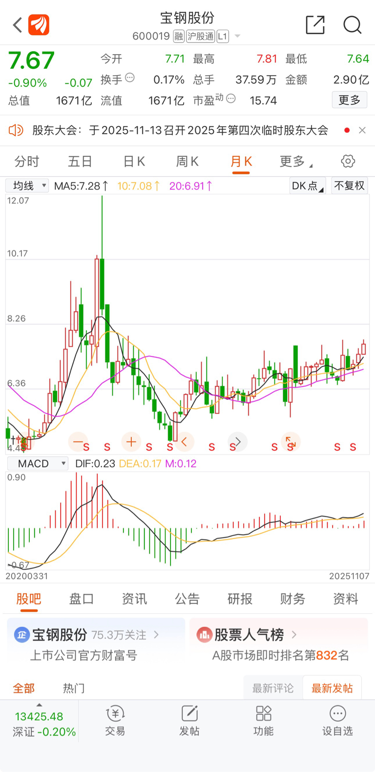 $宝钢股份(SH600019)$ 这一轮行情能涨到多少?