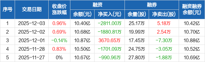 宝钢股份:融资净偿还2811万元,融资余额10.4亿元(12-03)