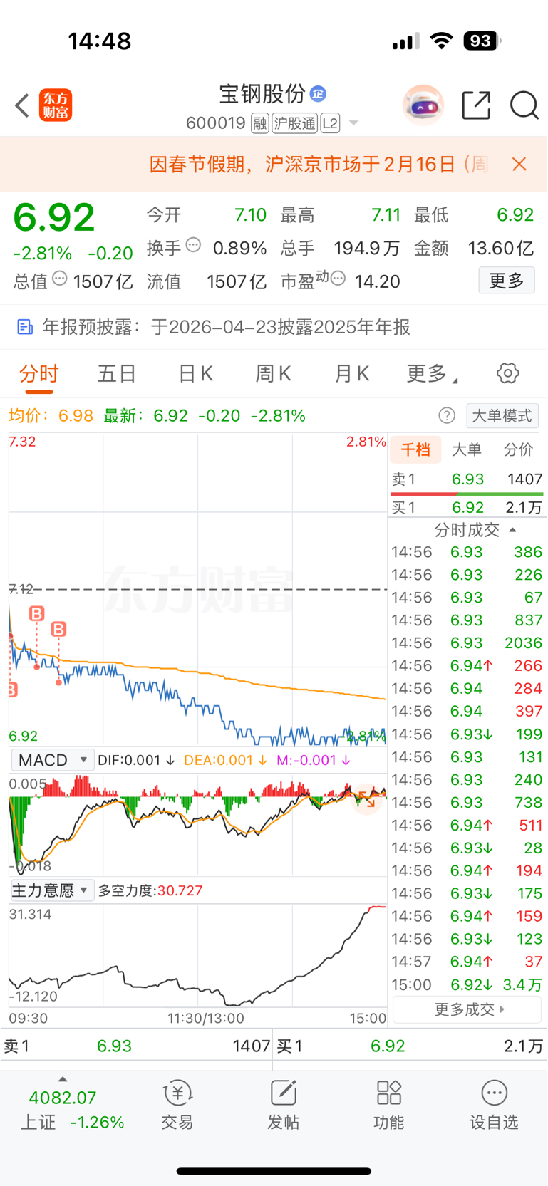 $宝钢股份(SH600019)$ 706 702 7各买了2万股,一起买了6万股,下午起来傻眼了