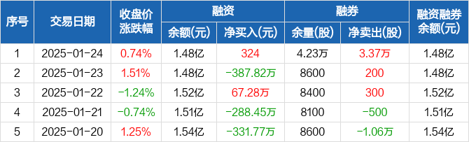 中原高速:融资净买入324元,融资余额1.48亿元(01-24)