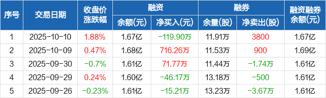 中原高速:融资净偿还119.9万元,融资余额1.67亿元(10-10)