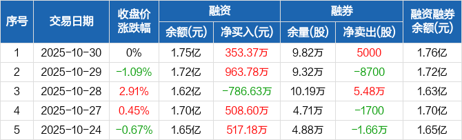 中原高速:融资净买入353.37万元,融资余额1.75亿元(10-30)