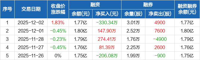 中原高速:融资净偿还330.34万元,融资余额1.77亿元(12-02)
