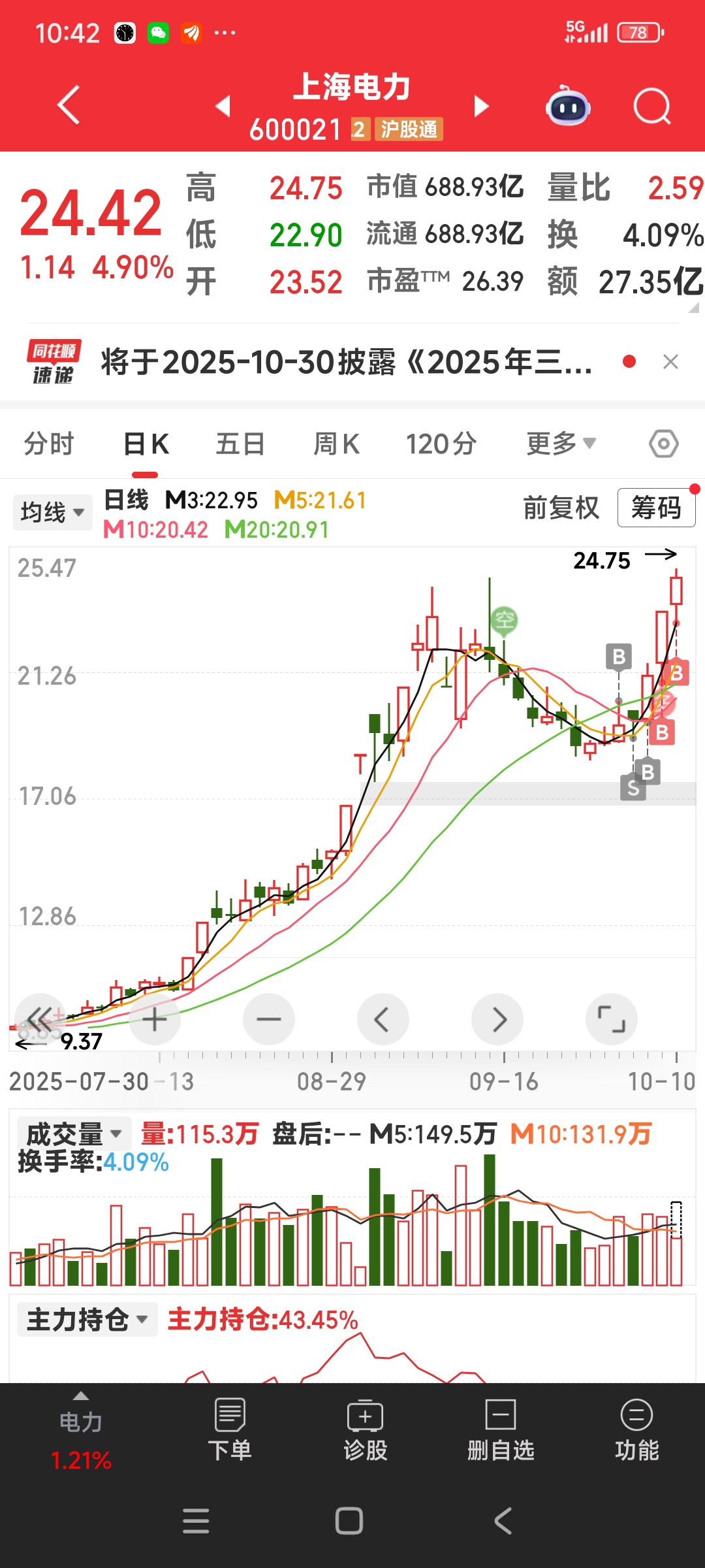 $上海电力(SH600021)$ 突破前高,继续助力加仓!