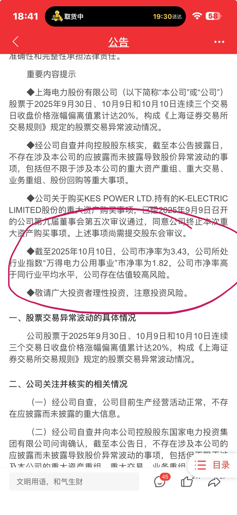 上海电力刚刚发个公告,公告有个点挺有意思,“公司自曝:公司存在估值较高的风险”,