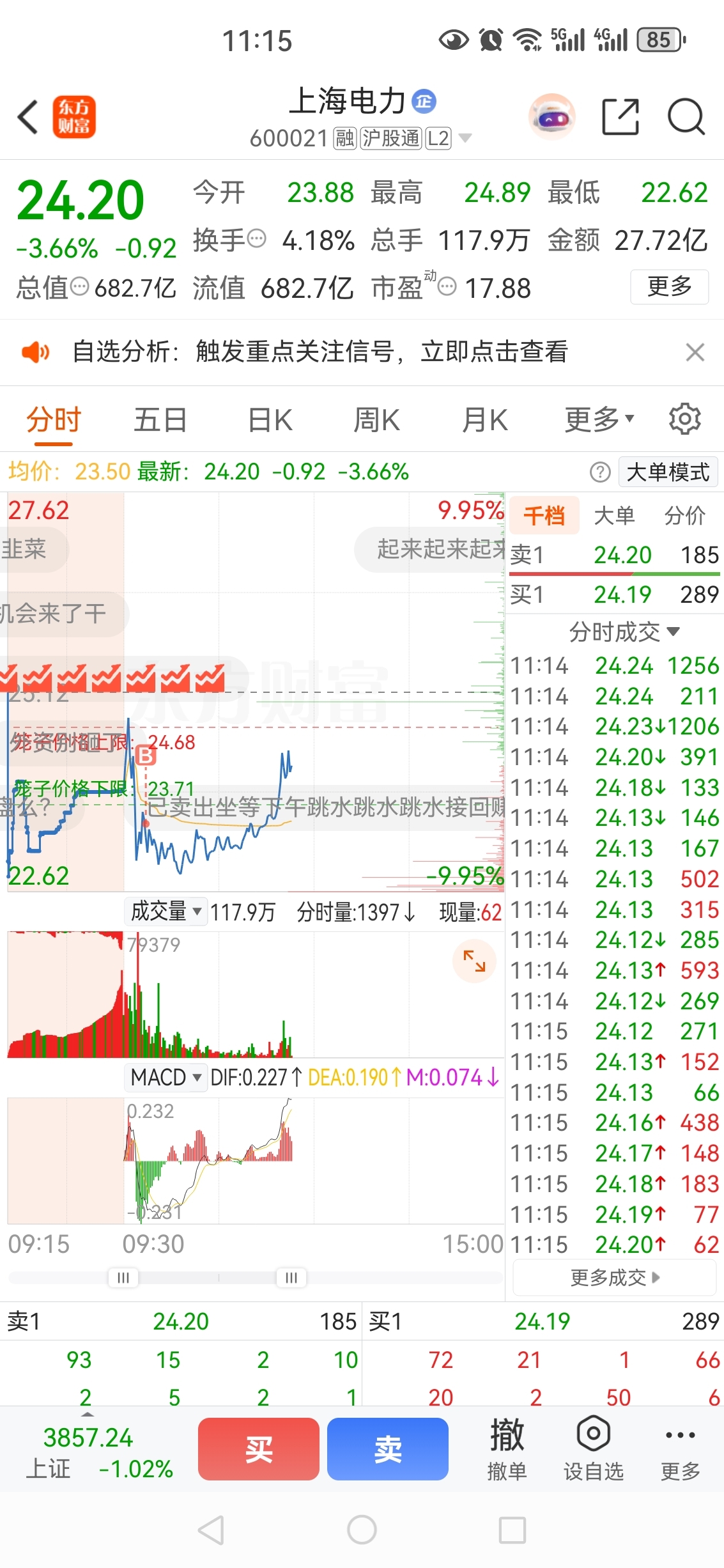 $上海电力(SH600021)$ 别涨了,再涨今天真的要赚钱了