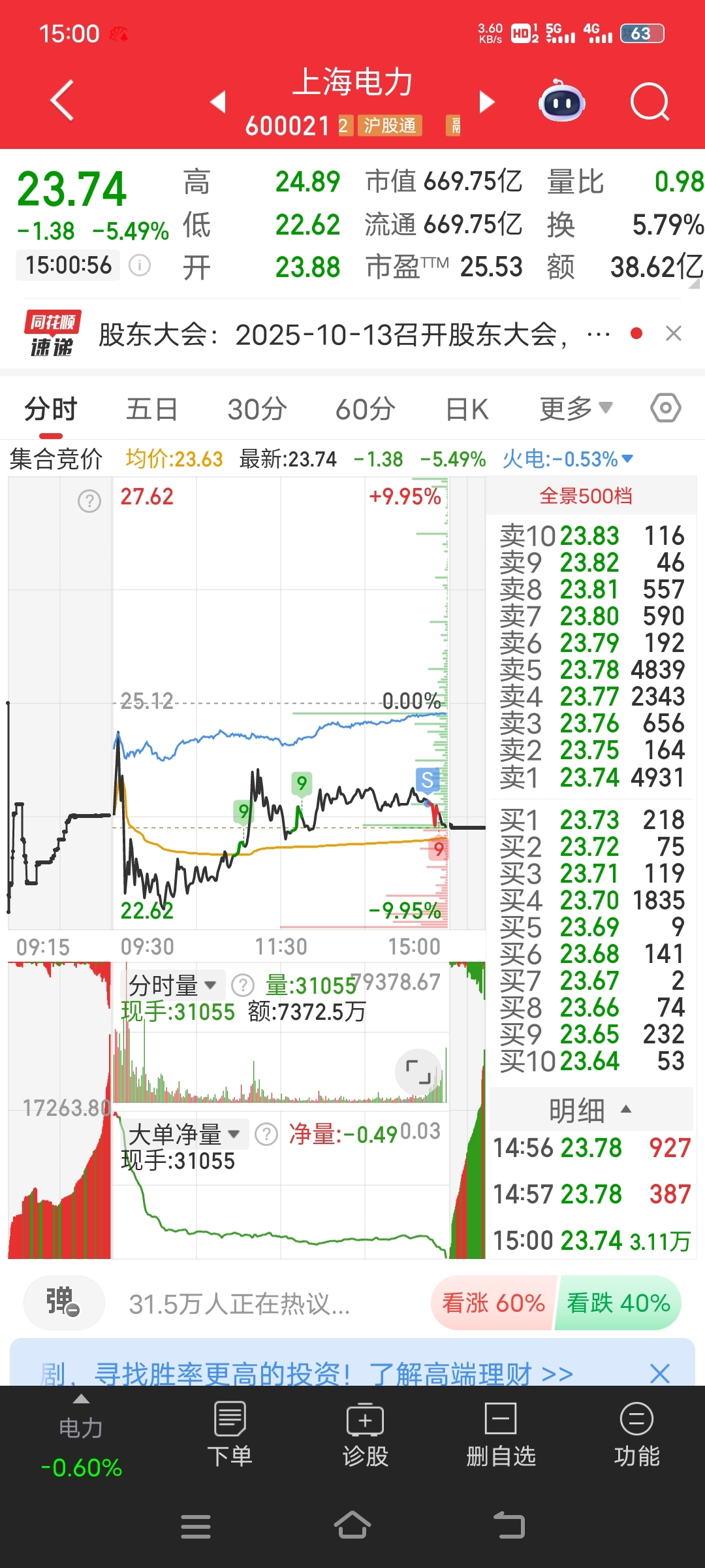 $上海电力(SH600021)$ 大盘差不多红了,我的钱跑哪去了