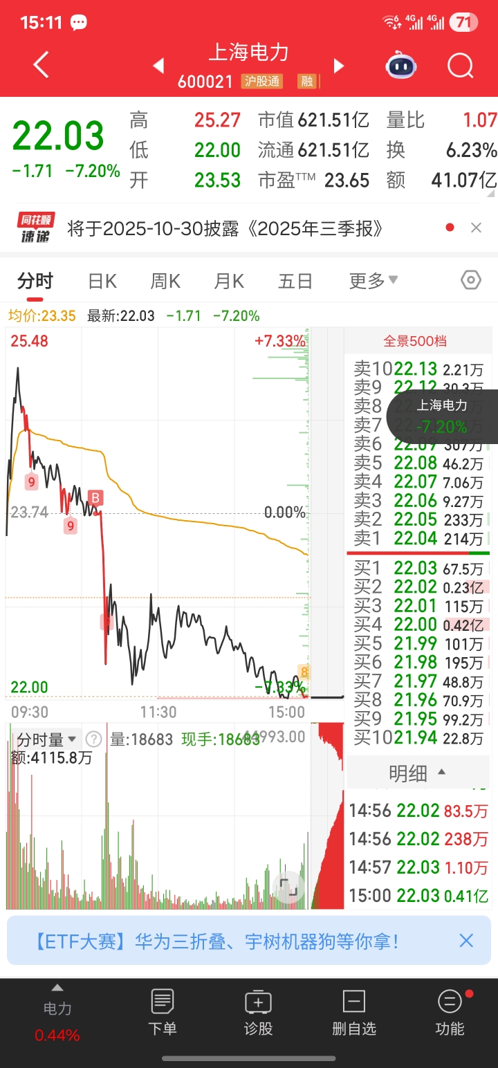 今天上海电力大跌的原因找到了