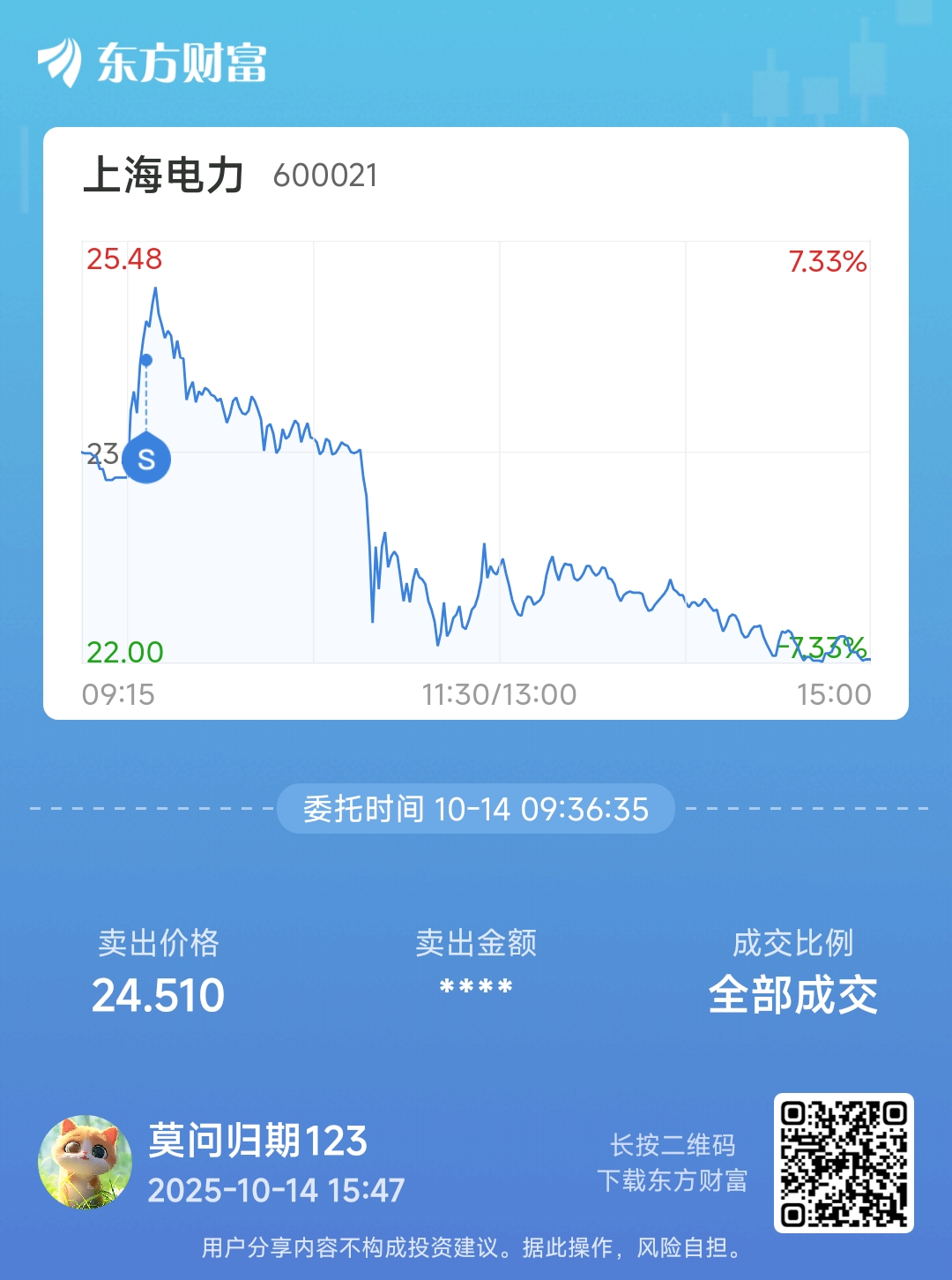 $上海电力(SH600021)$ 高开组训,锁定利润