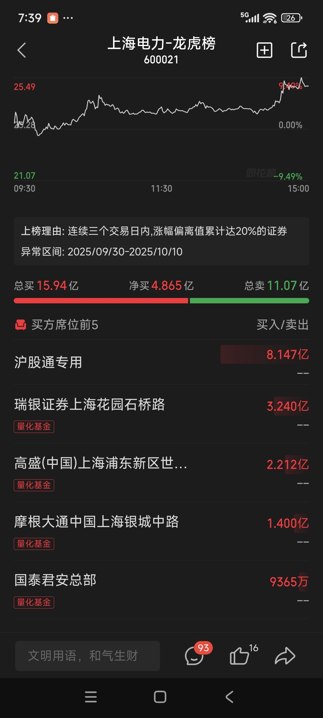 $上海电力(SH600021)$ 周五的龙虎榜外资会进来当炮灰吗
