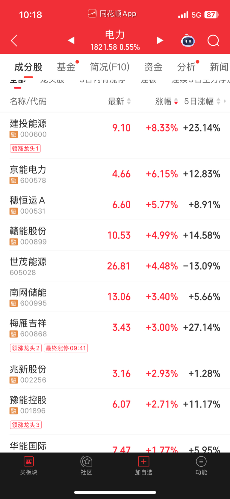 中国核建涨停,建投能源涨幅超8%,下午上海电力不排除涨停可能性。