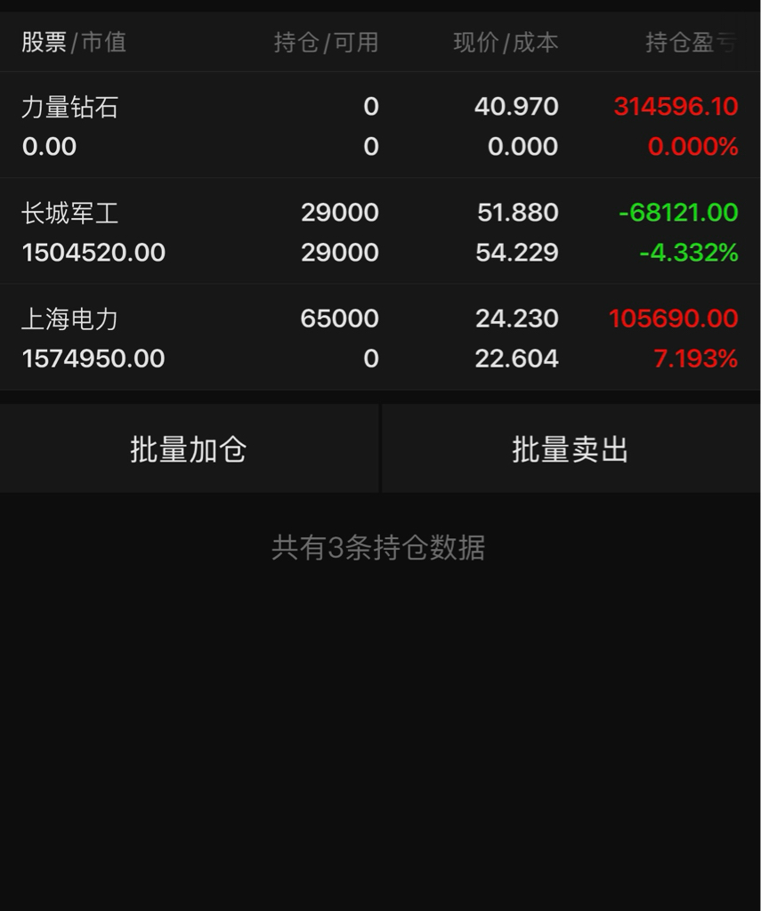 继续持仓长城军工,今天建仓上海电力。