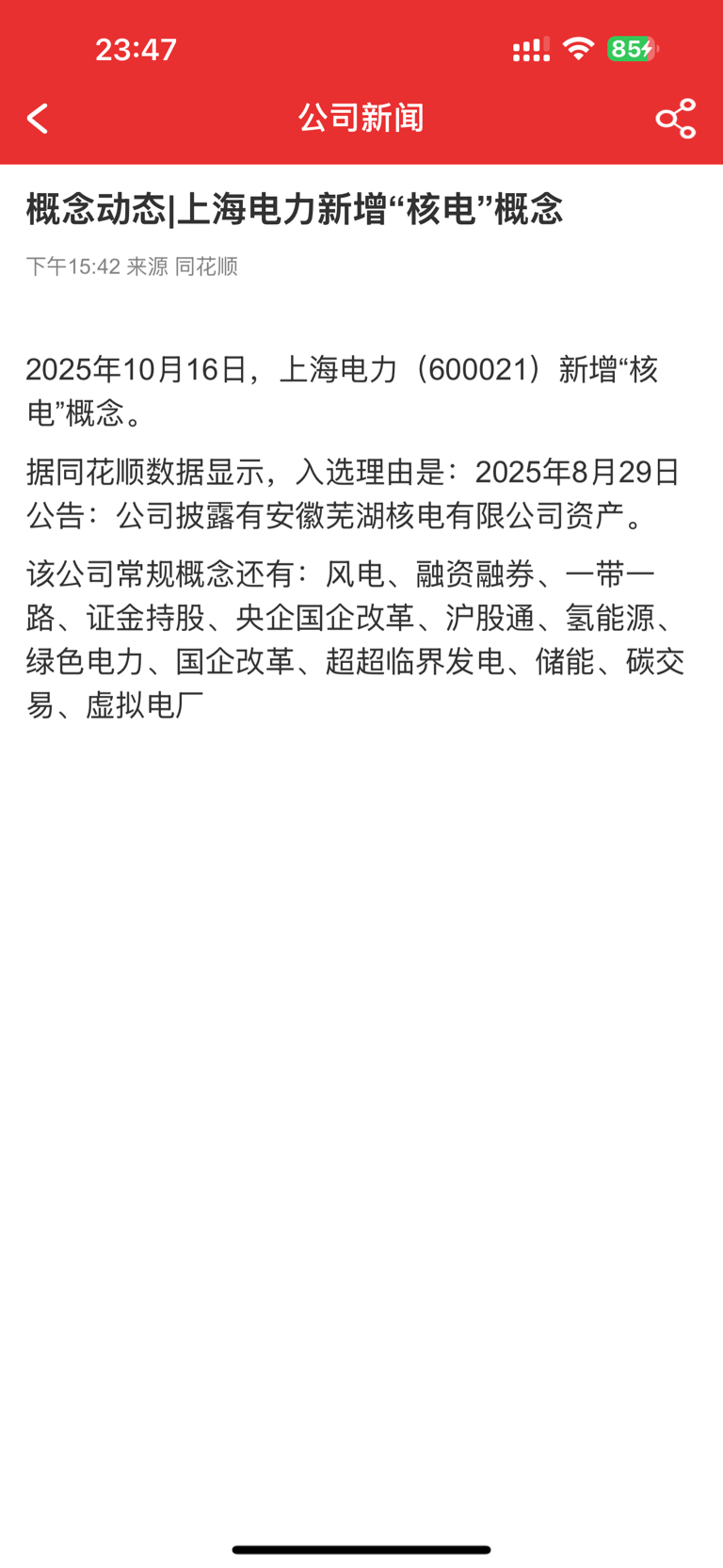 $上海电力(SH600021)$ 今天下午新增了核电概念