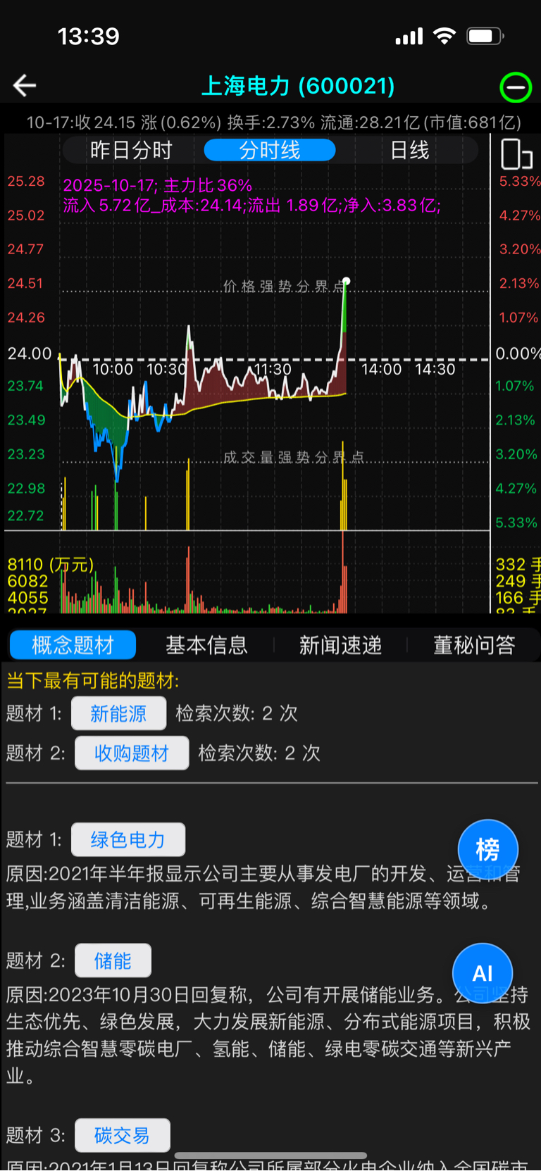 $上海电力(SH600021)$ 黄线是主力资金,要涨停