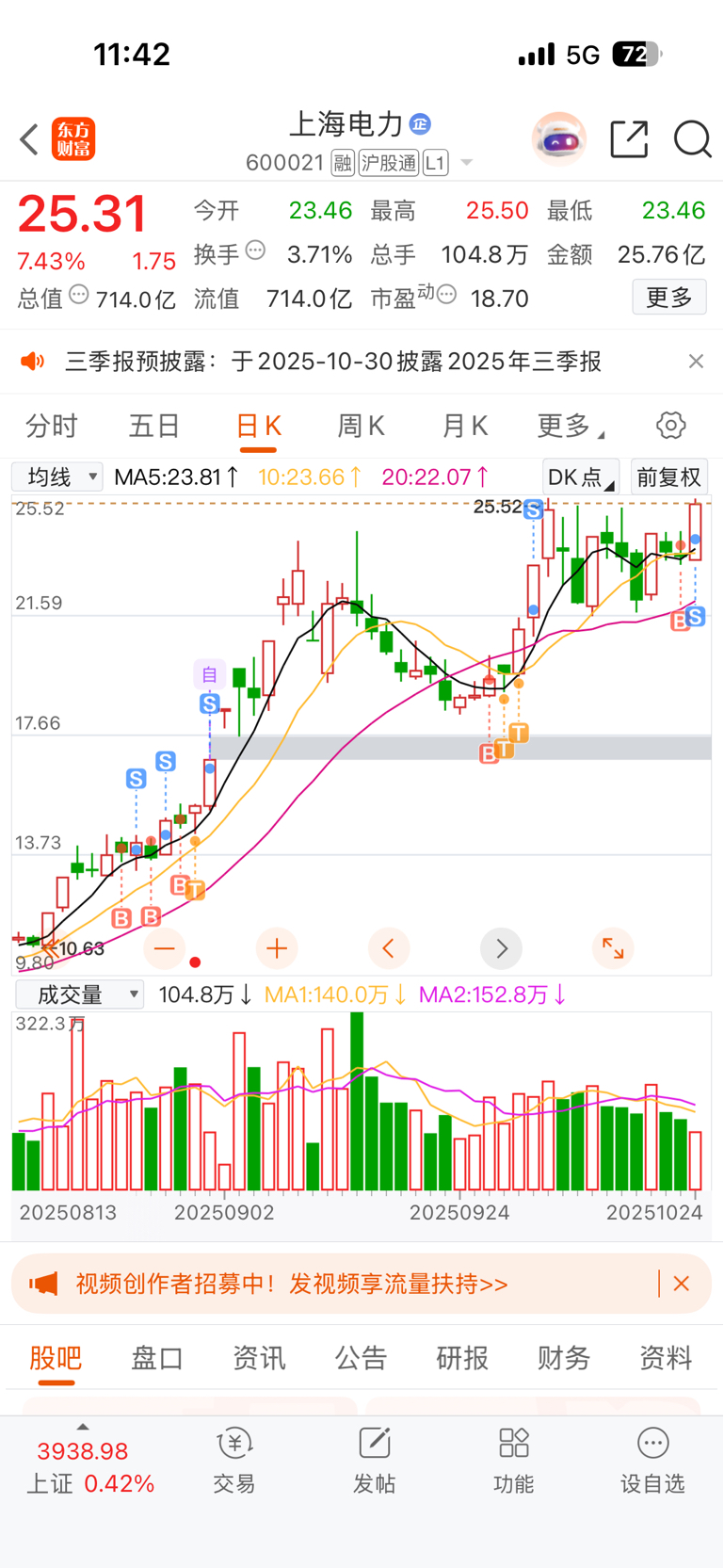 $上海电力(SH600021)$ 买五次赚五次,可惜都是小肉,好在不套人