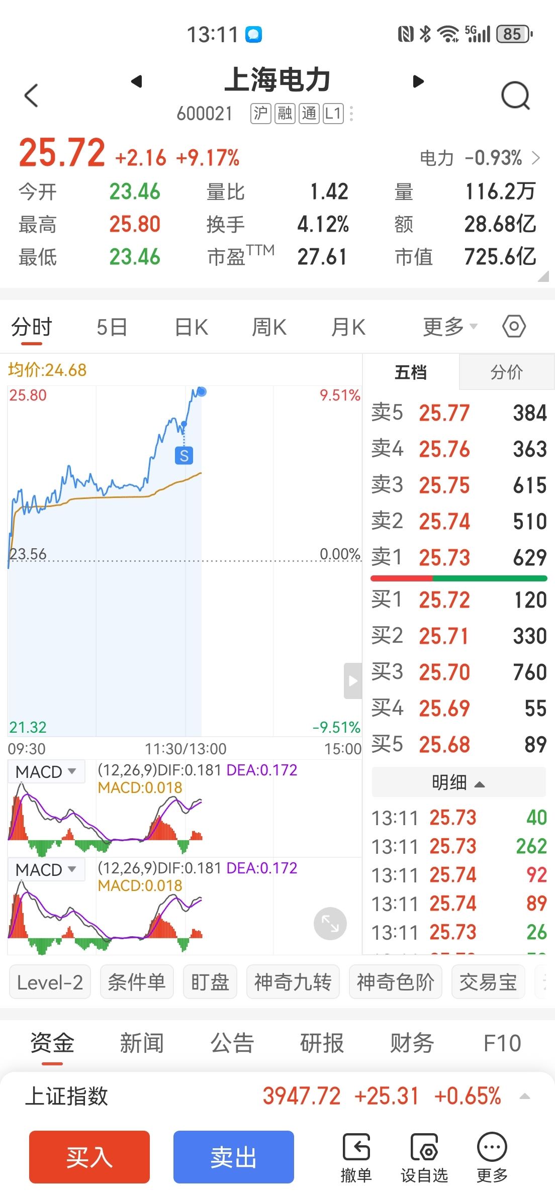 $上海电力(SH600021)$ 走了走了,虽然没有卖到最高,知足常乐呗