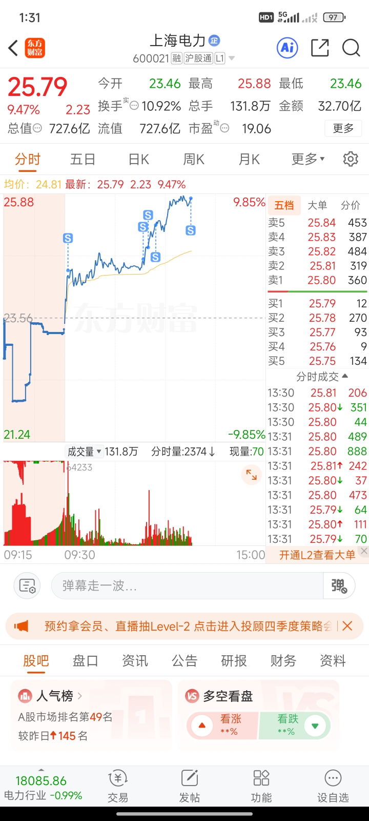 $上海电力(SH600021)$ 磨磨蹭蹭的全部给你了