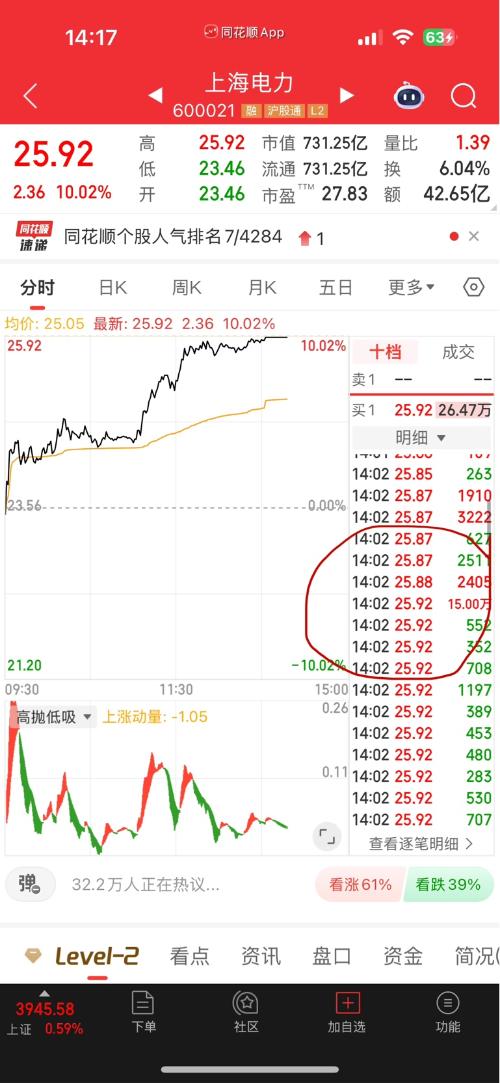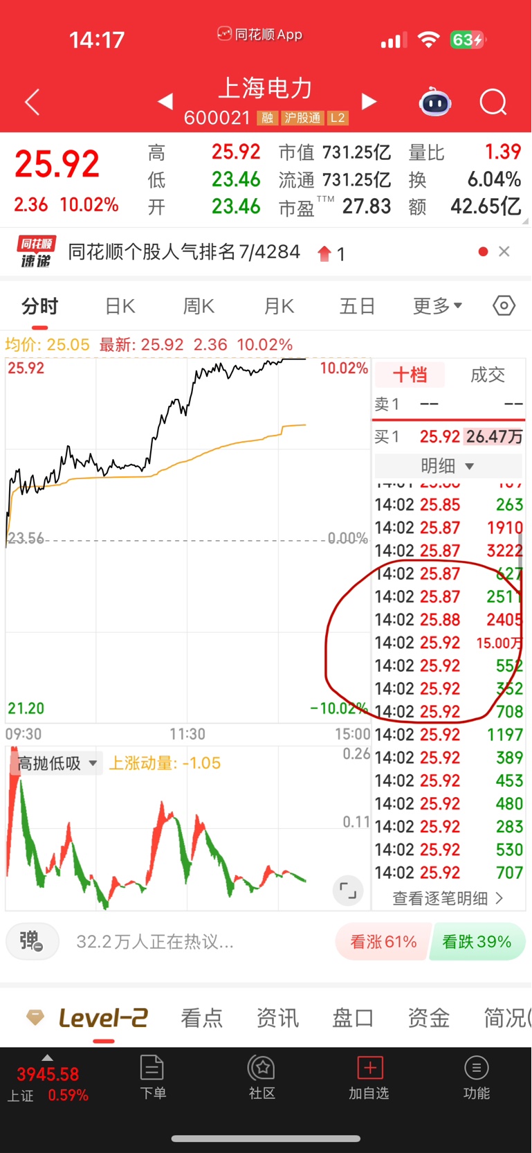 $上海电力(SH600021)$ 15万手买单一口吃,接近4个亿!最近三次的涨停封板,都是把卖方挂单全吃,根本来不及撤单,新来的主力很有实力啊!迫不及待想看龙虎榜了!