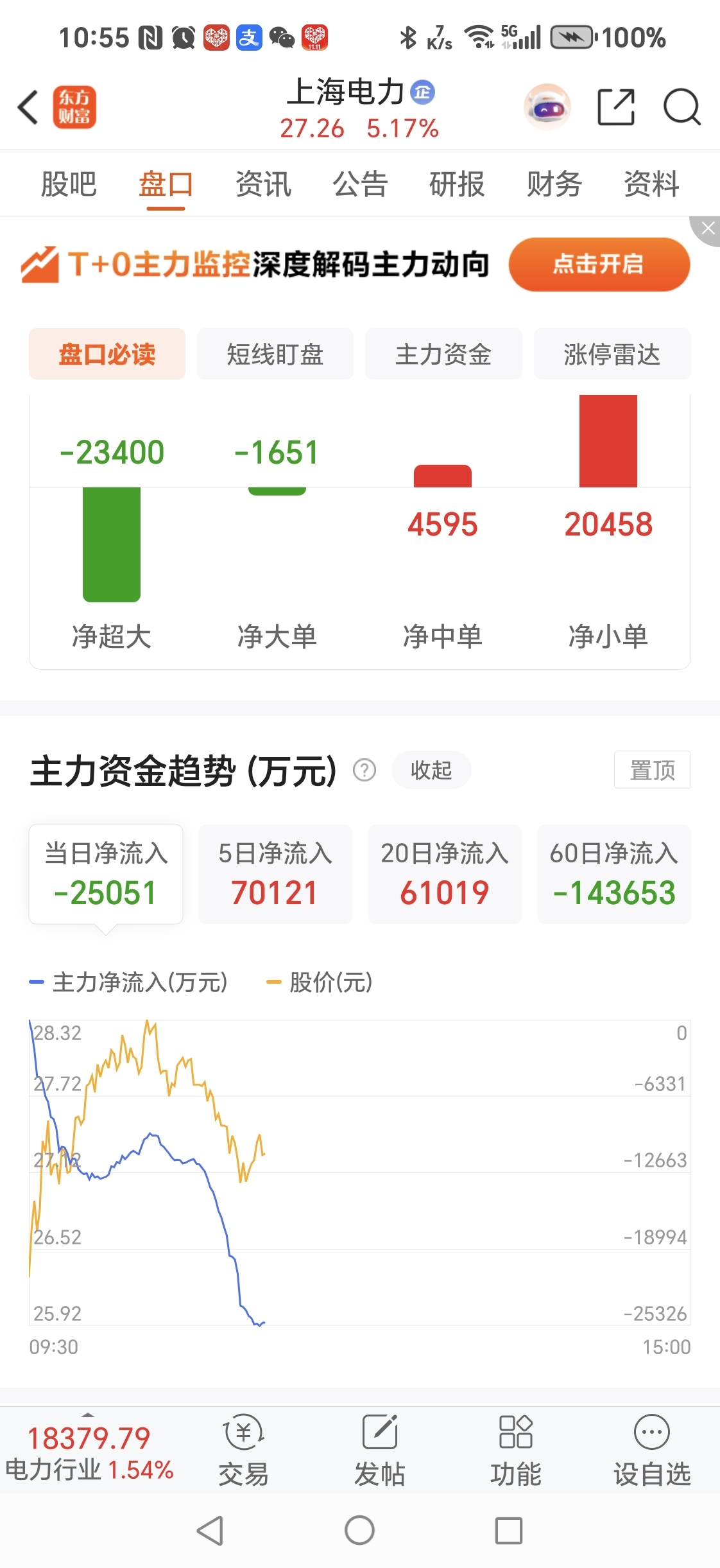 $上海电力(SH600021)$ 主力周五净流入快八个亿,今天开始城净流出状态,最高九个多点到现在五个多点,全是散户在接盘,包括我也是高位接盘进来的,如果主力净流出不止,高位接盘的可能要吃大面了