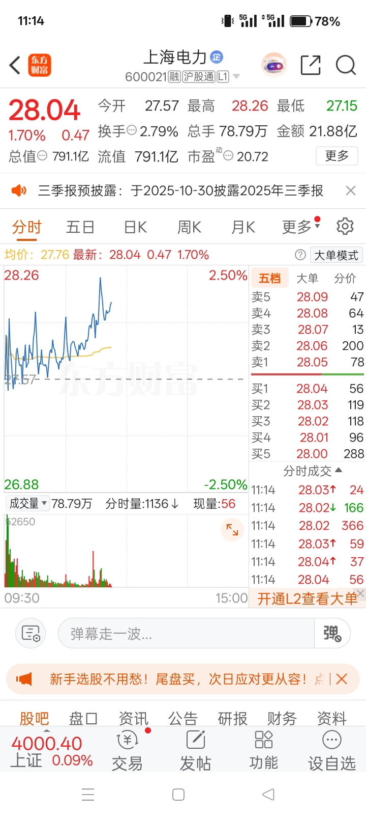 $上海电力(SH600021)$ 4000大关破了,兄弟们。还没有上车的抓紧!不管上升空间多大,走完主升浪,落袋为安!苍蝇也是肉!
