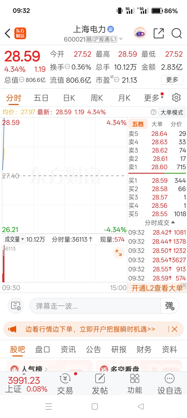 $上海电力(SH600021)$ 昨天进了上海电力的朋友,今天继续拿好,等待冲高出货,落袋为安,晚上加鸡腿,开红酒就是这么简单!