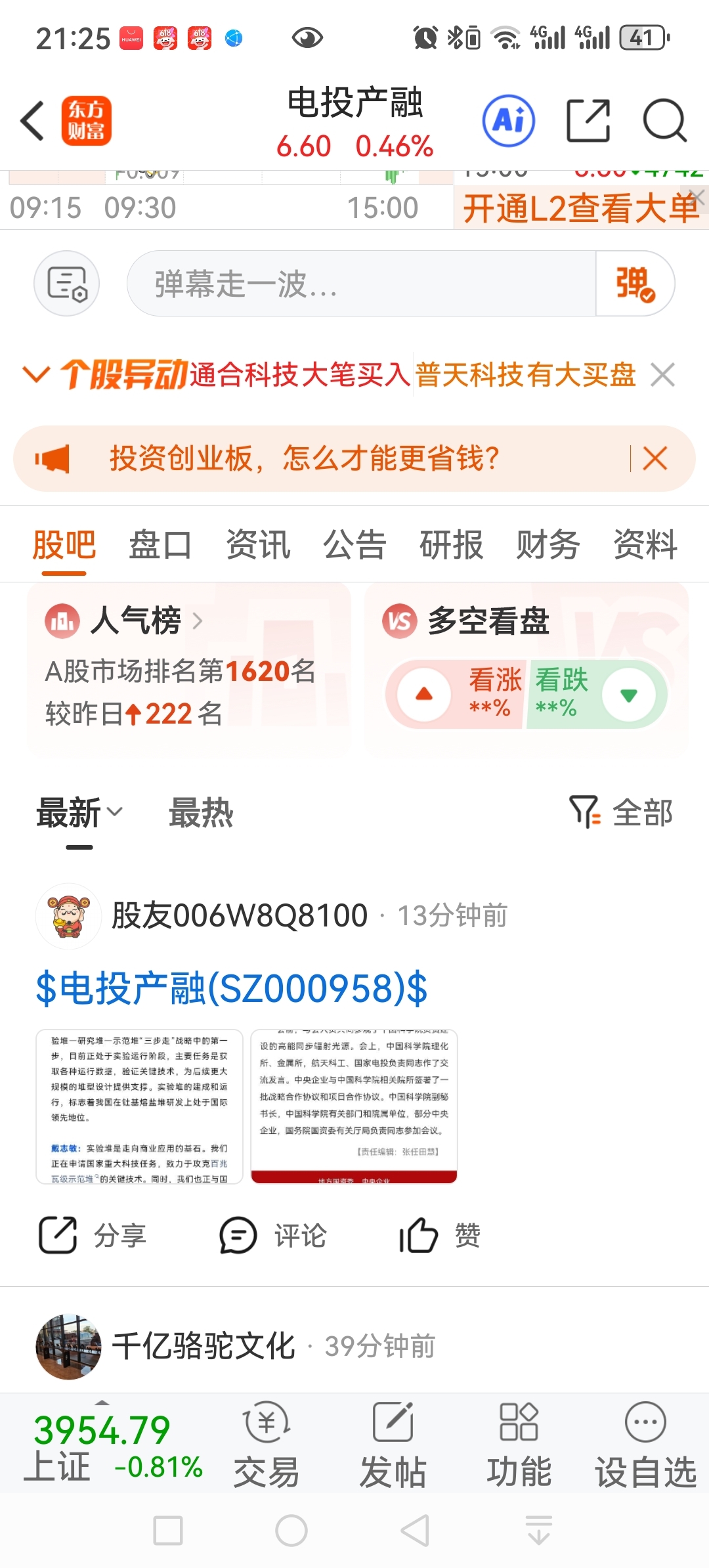 温馨提示: 1.根据《证券法》规定,禁止编造、传播虚假信息或者误导性信息,扰乱证券市场;2.用户在本社区发表的所有资料、言论等仅代表个人观点,与本网站立场无关,不对您构成任何投资建议。用户应基于自己的独立判断,自行决定证券投资并承担相应风险。《东方财富社区管理规定》