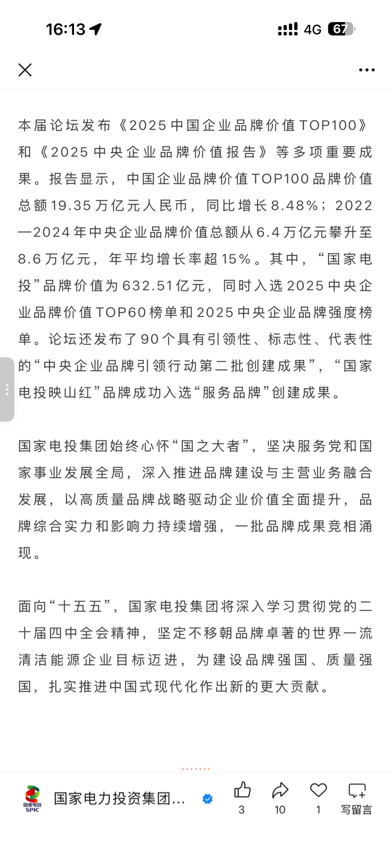 坚定不移朝品牌卓著的世界一流清洁能源企业目标迈进,为建设品牌强国、质量强国,扎实推进中国式现代化作出新的更大贡献