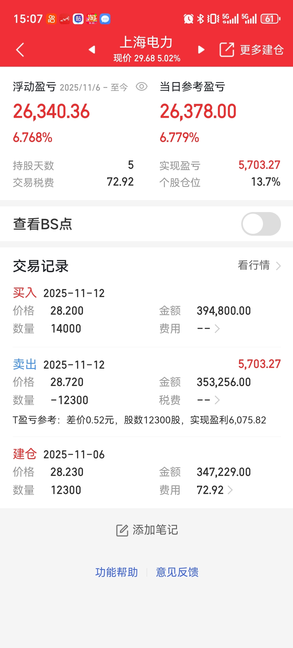 $上海电力(SH600021)$ 今天虽然亏了4个不过上海电力还是做t做准确了的