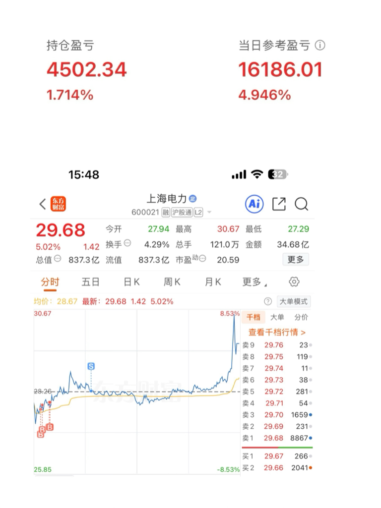 $上海电力(SH600021)$ 兄弟们,我红了,今天买入9000股,卖出2700股