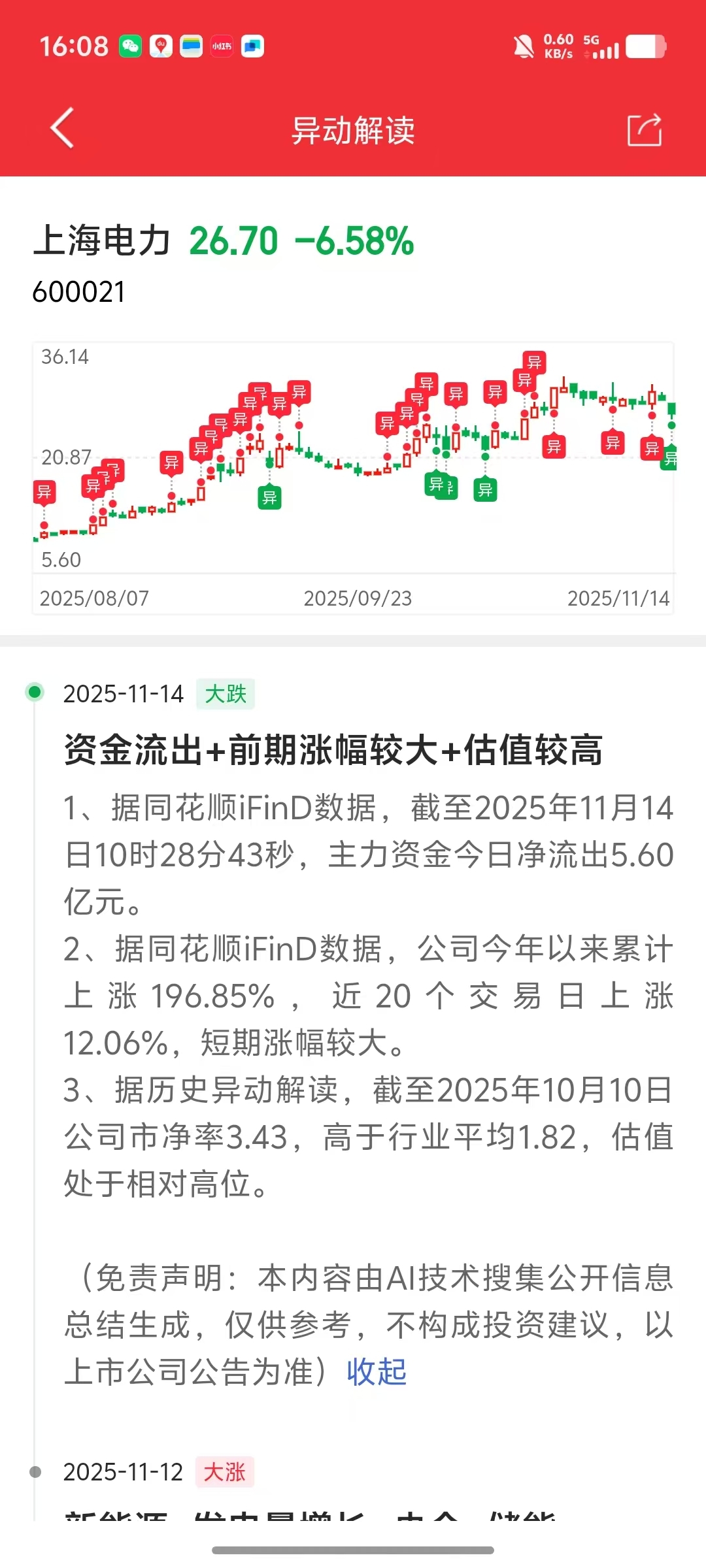 $上海电力(SH600021)$ 这个最近涨幅过大,所以跌得也多,大家恐慌也正常的,而且还没有实质证据说电力就是主力军,大家也要理性投资