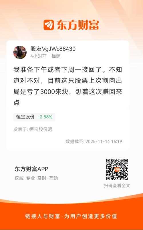 温馨提示: 1.根据《证券法》规定,禁止编造、传播虚假信息或者误导性信息,扰乱证券市场;2.用户在本社区发表的所有资料、言论等仅代表个人观点,与本网站立场无关,不对您构成任何投资建议。用户应基于自己的独立判断,自行决定证券投资并承担相应风险。《东方财富社区管理规定》