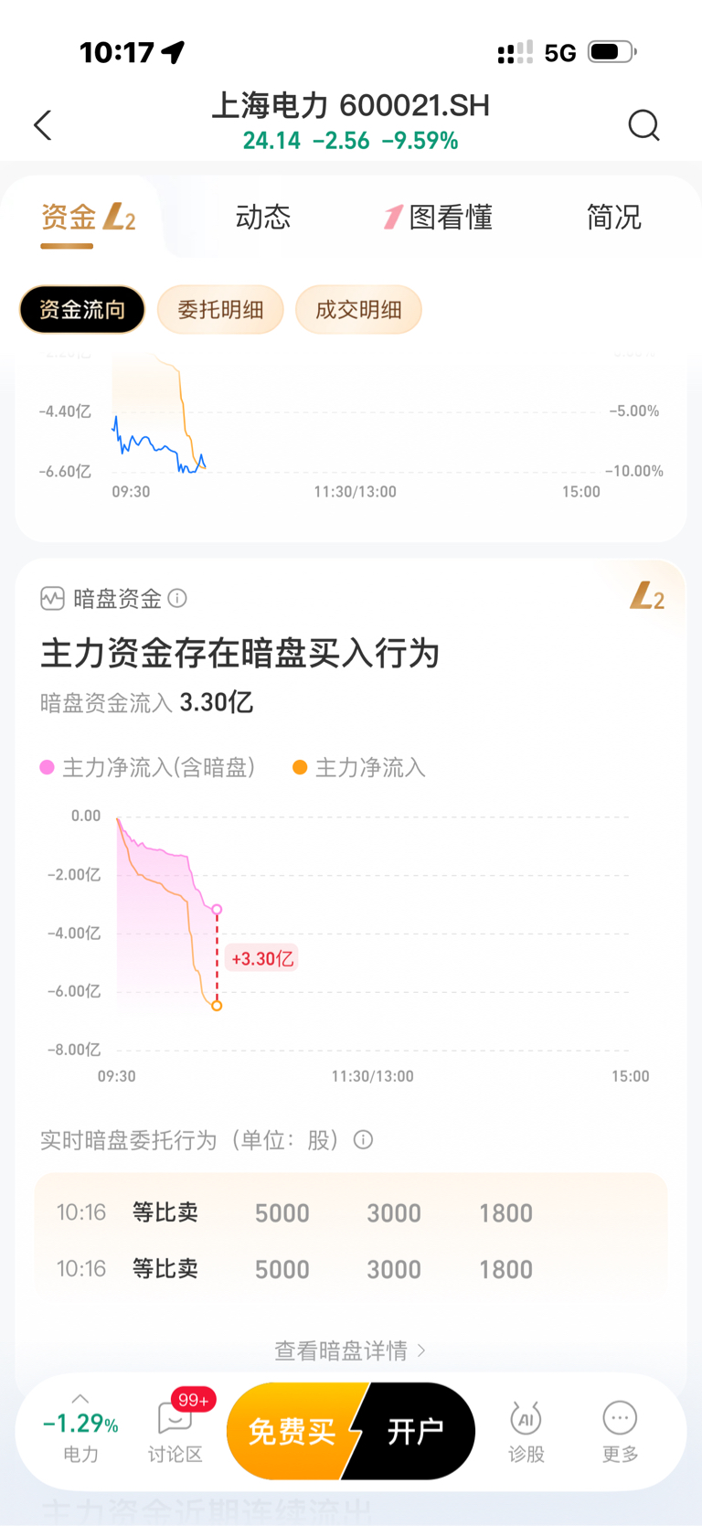$上海电力(SH600021)$ 主力在干嘛