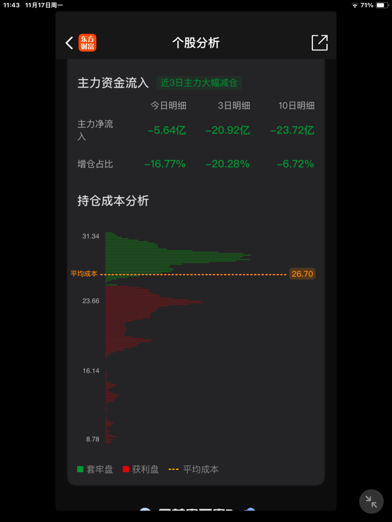 $上海电力(SH600021)$ 跌破主力持仓成本