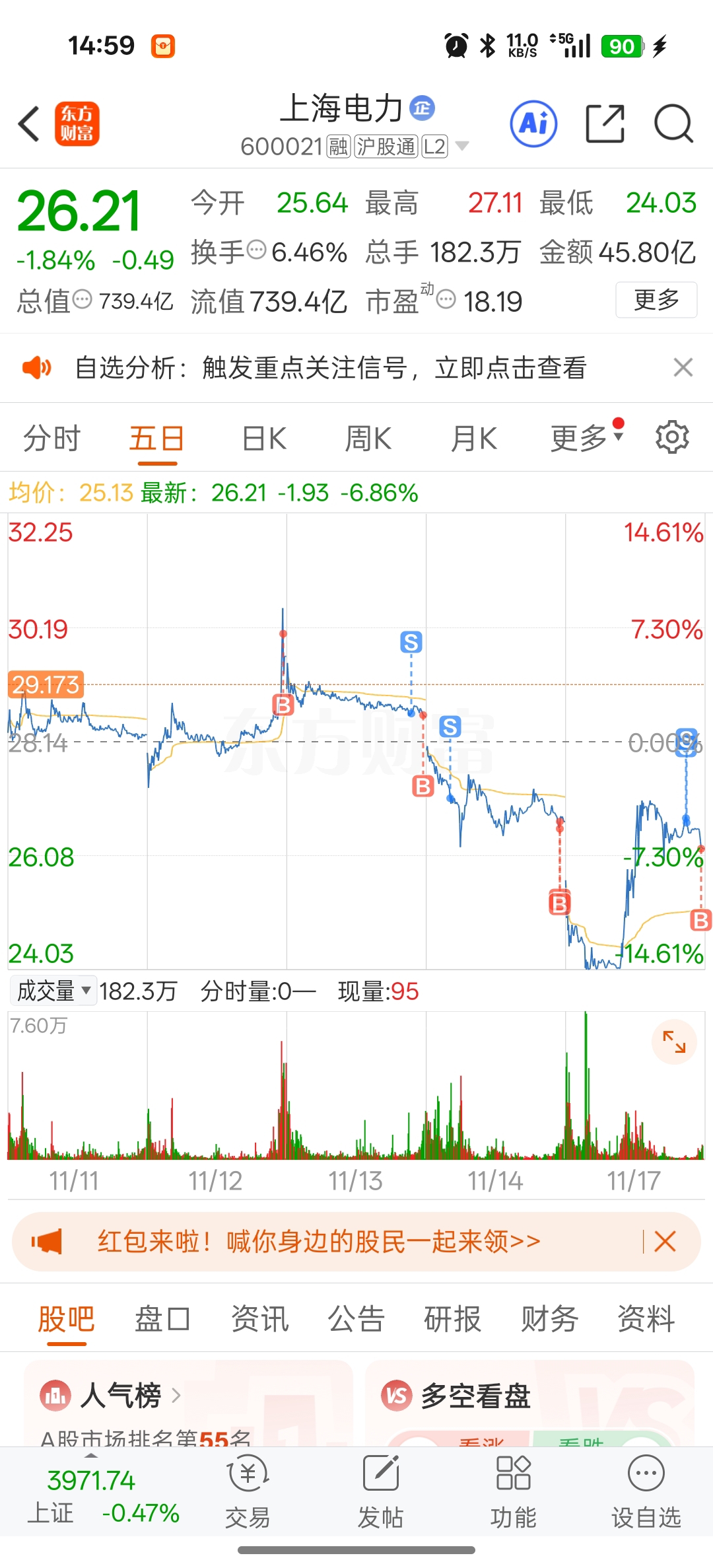 $上海电力(SH600021)$ 成本又做低5毛,慢慢来,不着急。~~~(明天来个涨停让我回本吧
