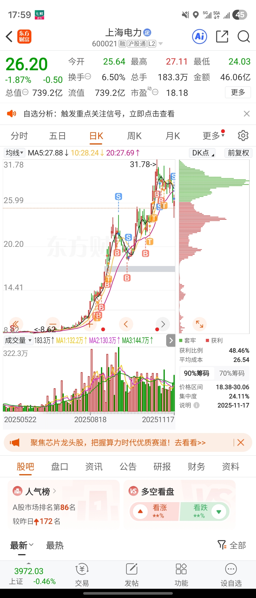$上海电力(SH600021)$ 跌倒到成本忍不住减仓了 哎.高位没走.洗的真的狠.