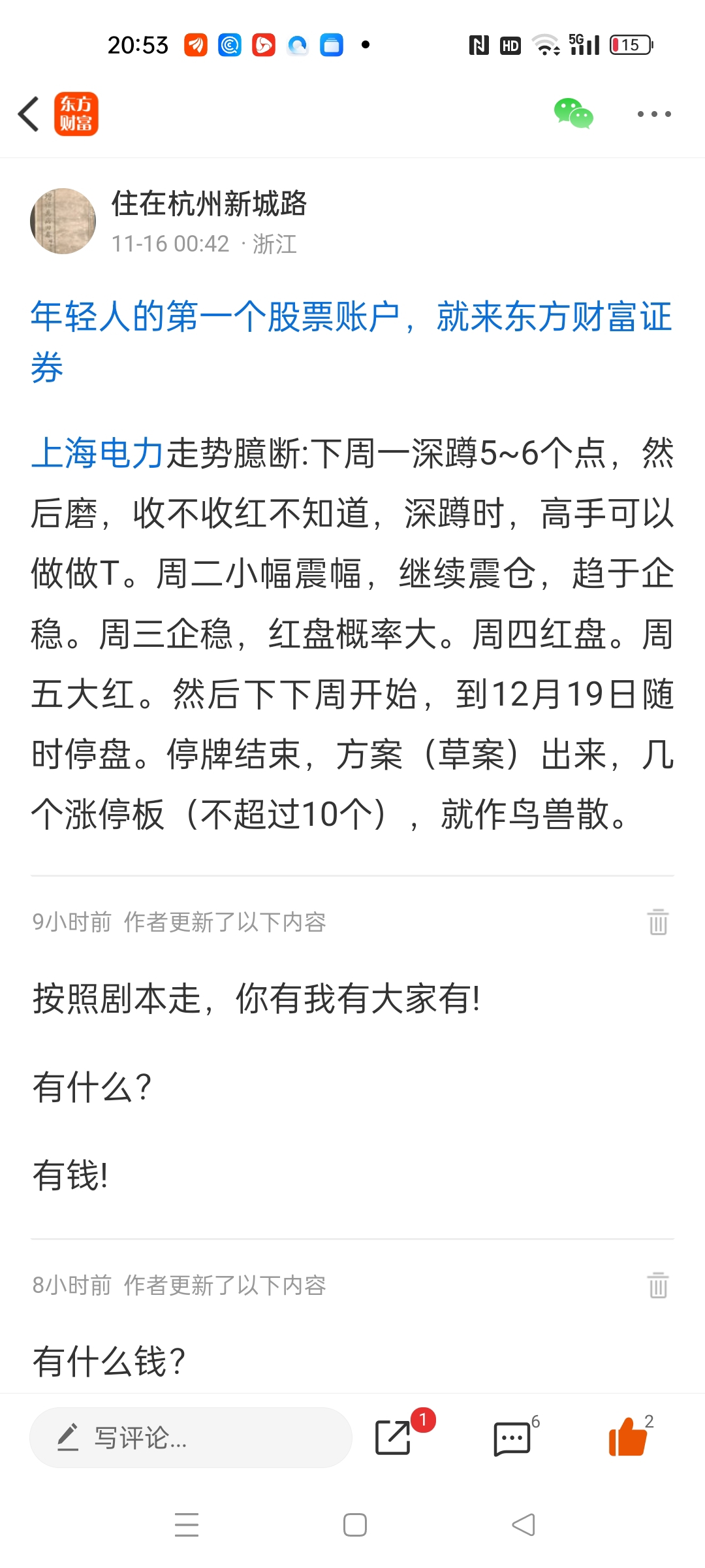 $上海电力(SH600021)$ 周一已过,看周二了。有剧本。